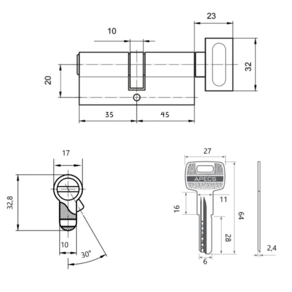 Цилиндровый механизм Apecs SM-80 (35/45С)-C-Ni