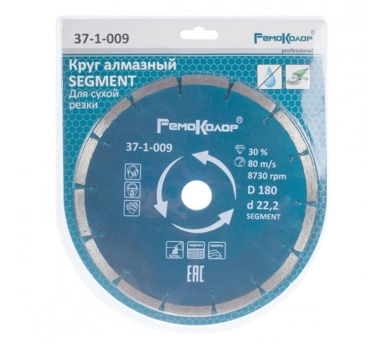 Диск алм. РемоКолор 180х7х22,2 сегментный бет/кирп/кам 37-1-009