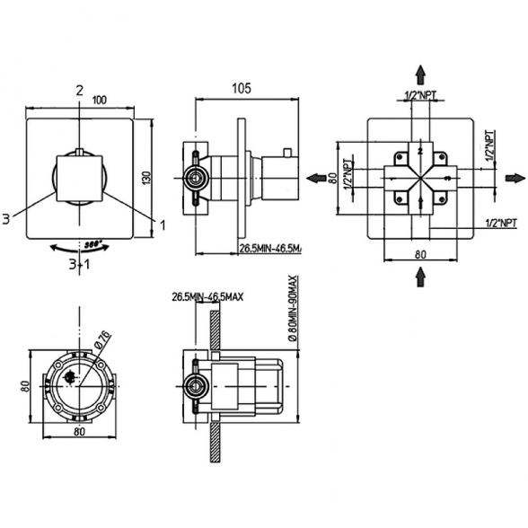 Дивертор встр. Paini Грация 3выход 21CR471 хром