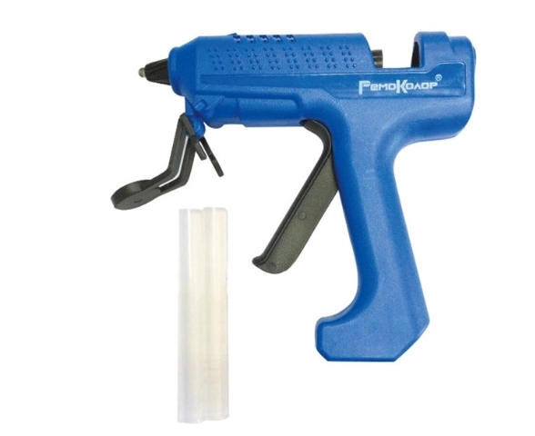 Пистолет используется для соединения сухих, чистых и обезжиренных поверхностей при помощи плавкого клея. Для лучшего схватывания материалов гладким поверхностям нужно придать шероховатость (зашкурить). Прибор отлично подходит для склеивания керамики, дерева, пластмассы, бумаги и прочего.