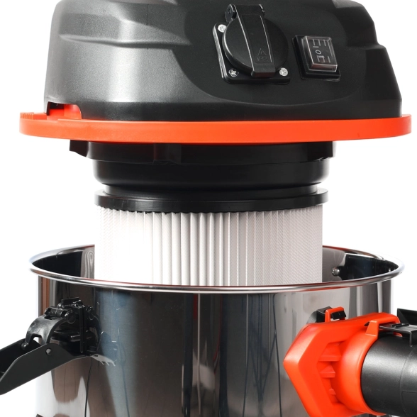 Модель VC 330 имеет нержавеющий бак объёмом 30 литров и HEPA-фильтр, обеспечивающий высокоэффективную задержку частиц.