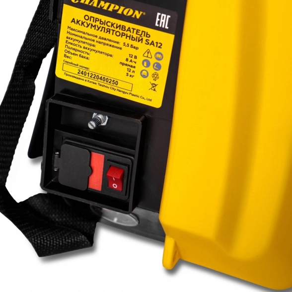 Аккумуляторный распылитель Champion SA12 – это мощный и удобный инструмент для обработки растений, покраски и других задач, требующих распыления жидкостей. Его 12-литровый бак обеспечивает длительную работу без необходимости частой дозаправки, а производительность 3,1 л/мин позволяет быстро и эффективно обрабатывать большие площади. Легкий вес (5 кг) и эргономичный дизайн обеспечивают комфорт при работе, а 1,2-метровый шланг и 50-сантиметровая трубка дают необходимый радиус действия. Аккумулятор емкостью 8 Ач обеспечивает достаточное время работы, а использование пластика делает распылитель легким и прочным. Максимальная температура обрабатываемой жидкости составляет 35 градусов. Идеальное решение для всех, кто ценит удобство и эффективность.