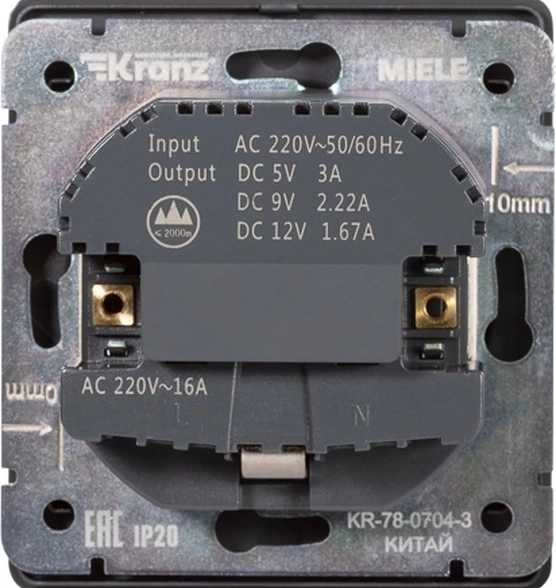 Розетка ROUND 1-я с/з с/у з/шт 16А USB A+C 5B/3A оникс KRANZ