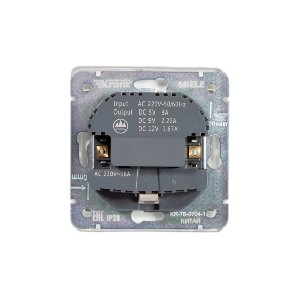 Розетка ROUND 1-я с/з с/у з/шт 16А USB A+C 5B/3A Перл.KRANZ