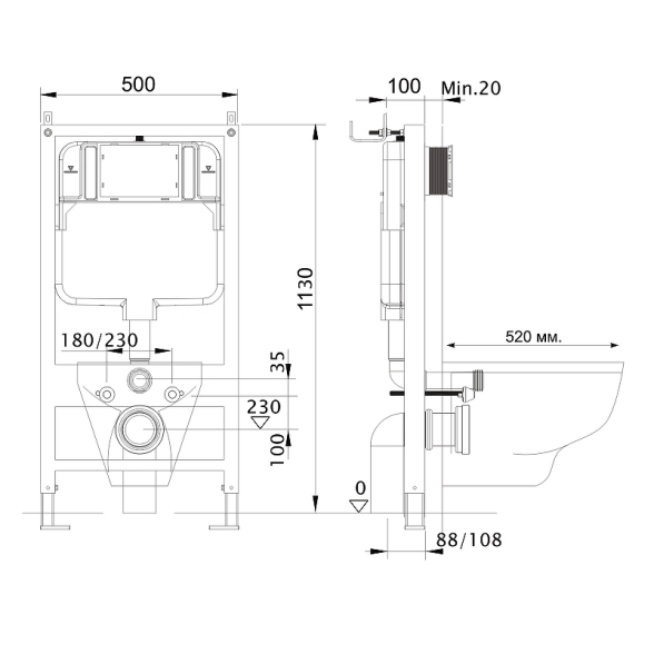 - Комплектация: Монтажная рама, смывной бачок, звукоизоляционная прокладка