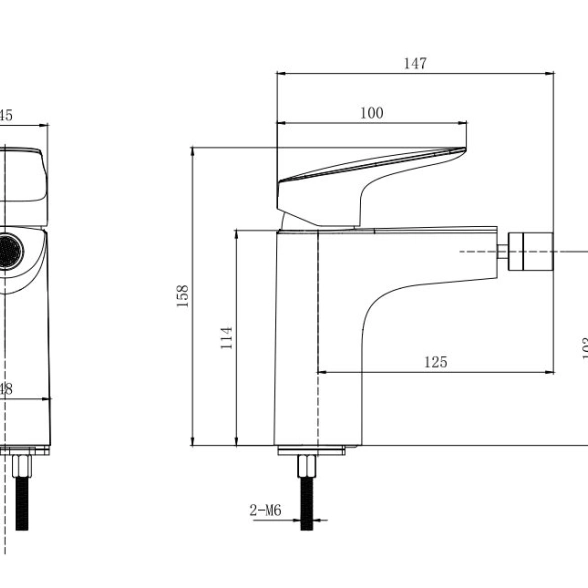 Рычажное управление обеспечивает комфорт и простоту использования. Смеситель имеет стандартный размер и подходит для большинства биде.