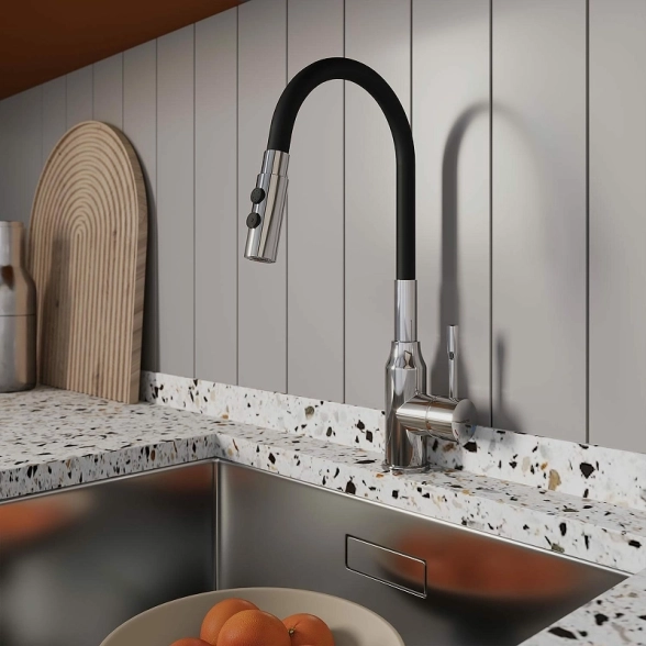Смеситель для мойки Milardo Meal M01SB2FM05 – это сочетание стильного дизайна и практичных решений. Хромированное покрытие с черными акцентами придает смесителям уникальный вид, а гибкий излив делает его использование максимально удобным.