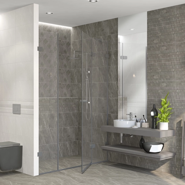 Элегантный декор HYGGE GREY CRISTALL размером 31,5x63 см - это воплощение современного стиля с нотками уюта. Серый мраморный фон с легкими прожилками создает ощущение естественности, а геометрический рисунок добавляет динамики и изысканности. Идеальное решение для создания стильного и гармоничного интерьера в духе минимализма. Прекрасно сочетается с другими элементами коллекции HYGGE.