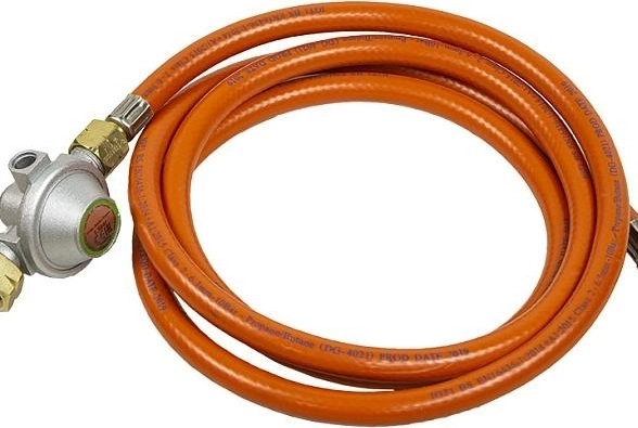 -Армированный 2-х метровый газовый шланг с редуктором давления включен в комплект поставки и позволит подключить обогреватель к газовым балонам;