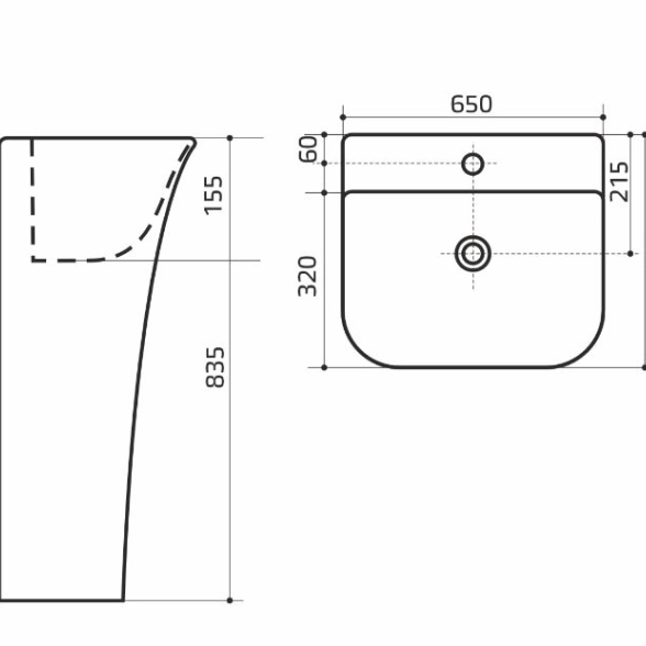 Умывальник-моноблок ELITE2 WAVE 650*450*835 белый прямоуг